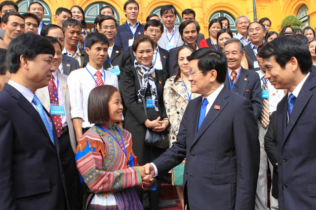 | Chủ tịch nước Trương Tấn Sang gặp mặt 104 nhà giáo tiêu biểu (Ảnh: Nguyễn Khang/TTXVN) |