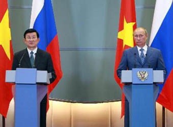 | Tổng thống Liên bang Nga Vladimir Putin và Chủ tịch nước Trương Tấn Sang gặp gỡ báo chí sau khi hội đàm |