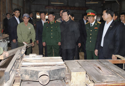 | Chủ tịch nước Trương Tấn Sang tham quan mô hình huấn luyện tại Tiểu đoàn Huấn luyện cơ động - Bộ đội Biên phòng tỉnh Đắk Nông. |