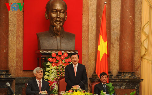 (VOV5) - Chiều nay (8/10), tại Phủ Chủ tịch, Chủ tịch nước Trương Tấn Sang gặp mặt Đoàn đại biểu tham dự Liên hoan âm nhạc mới quốc tế Á-Âu 2014.