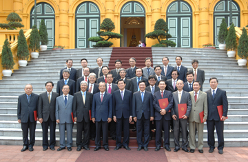 | Chủ tịch nước Trương Tấn Sang, Bộ trưởng Ngoại giao Phạm Bình Minh, Chủ nhiệm Văn phòng Chủ tịch nước Đào Việt Trung chụp ảnh lưu niệm với các Đại sứ. Ảnh: tgvn.com.vn |