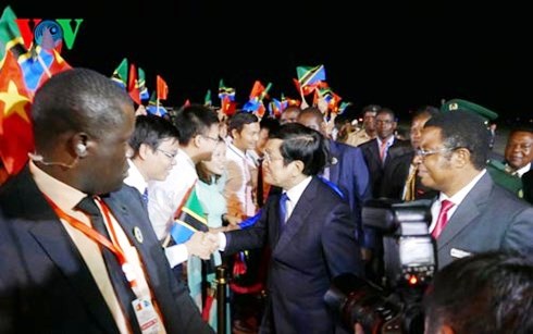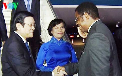 Đêm qua theo giờ Tanzania tức rạng sáng 9/3 theo giờ Hà Nội, Chủ tịch nước Trương Tấn Sang và Phu nhân cùng đoàn đại biểu cấp cao Việt Nam tới sân bay quốc tế Julius Nyerere, Dar Es Salaam bắt đầu chuyến thăm cấp Nhà nước Cộng hòa Thống nhất Tanzania theo lời mời của Tổng thống Jonh Magufuli.