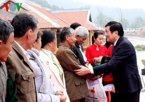 Tặng quà cho người nghèo và các nạn nhân chất độc da cam thuộc hai xã Mỹ Sơn và Nhân Sơn, huyện Đô Lương, tỉnh Nghệ An, Chủ tịch nước đánh giá cao Đảng bộ và chính quyền cơ sở đã quan tâm chăm lo đời sống, vật chất, tinh thần của nhân dân nói chung, các gia đình chính sách và người nghèo nói riêng bằng những việc làm cụ thể.