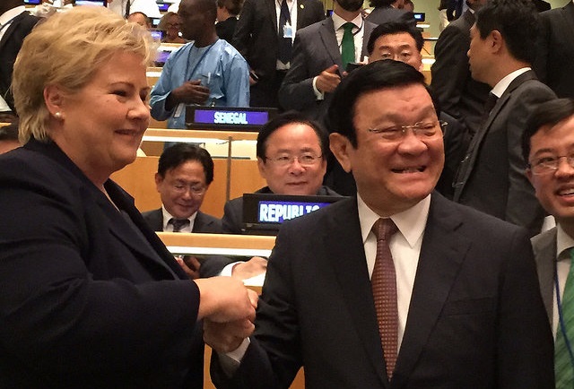 (VOV5) - Tại cuộc tiếp xúc nhân dịp tham dự Hội nghị Thượng đỉnh Liên hiệp quốc tại New York, Hoa Kỳ, Chủ tịch nước khẳng định Việt Nam coi trọng phát triển quan hệ hữu nghị hợp tác với Na Uy, một trong những nước có nhiều đóng góp, hỗ trợ Việt Nam trong công cuộc đổi mới và hội nhập.