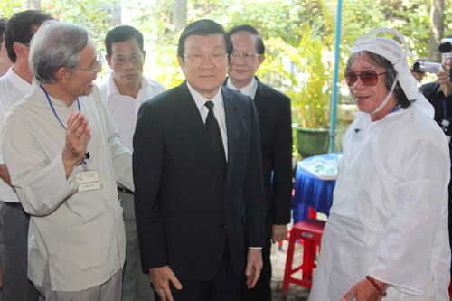 | Chủ tịch nước Trương Tấn Sang đến dự tang lễ của Giáo sư Trần Văn Khê. Ảnh: vnexpress.net |
