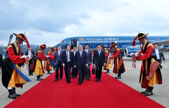 (VOV5)- Chiều nay, Chủ tịch Quốc hội Nguyễn Sinh Hùng và Đoàn đại biểu cấp cao Quốc hội Việt Nam đến Seoul, bắt đầu chuyến thăm chính thức nước Đại Hàn Dân Quốc. Lễ đón chính thức Đoàn đại biểu cấp cao Việt Nam được tổ chức trọng thể tại sân bay quân sự Seong-nam, thủ đô Seoul.