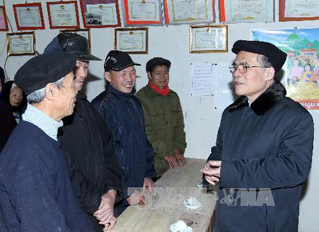 | Chủ tịch Quốc hội Nguyễn Sinh Hùng gặp gỡ nhân dân thôn Phiêng An II, xã Quang Thuận |