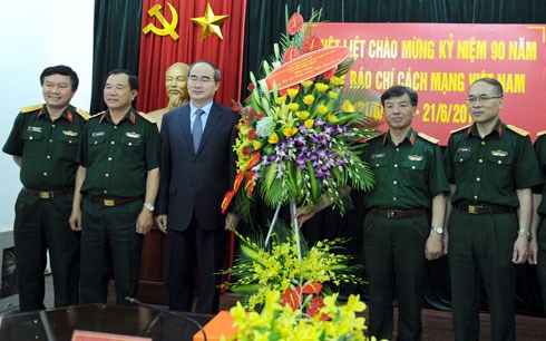 | Ông Nguyễn Thiện Nhân chúc thăm chúc mừng báo Quân đội nhân dân. |