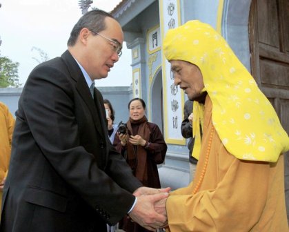 (VOV5) - Chủ tịch Ủy ban Trung ương Mặt trận Tổ quốc Việt Nam Nguyễn Thiện Nhân, đến thăm, chúc Tết Trưởng lão Hòa thượng Thích Phổ Tuệ, Pháp chủ Giáo hội Phật giáo Việt Nam.