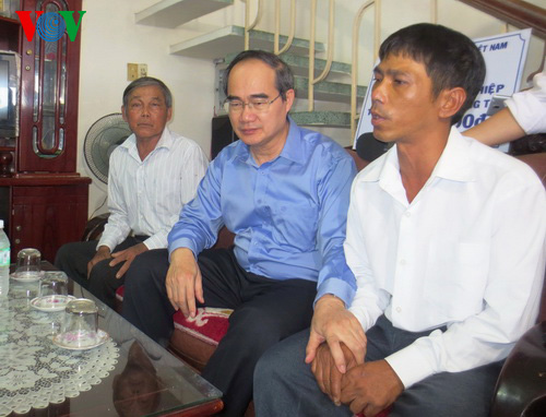 Ông Nguyễn Thiện Nhân đến thăm, động viên gia đình ông Hà Văn Dỡ, thương binh ở xã Vạn Long, huyện Vạn Ninh và thăm Mẹ Việt Nam anh hùng Phạm Thị Trà ở xã Ninh Thọ, thị xã Ninh Hòa. Ông Nguyễn Thiện Nhân cũng đến thăm, tìm hiểu quá trình đóng tàu bám biển Trường Sa của 2 gia đình ngư dân tiêu biểu xã Phước Đồng, thành phố Nha Trang. Uỷ ban Trung ương Mặt trận Tổ quốc Việt Nam hỗ trợ mỗi gia đình ngư dân bám biển Trường Sa 300 triệu đồng để đóng tàu. Ông Nguyễn Thiện Nhân cũng làm việc với Lữ đoàn 189 Quân chủng Hải quân./.