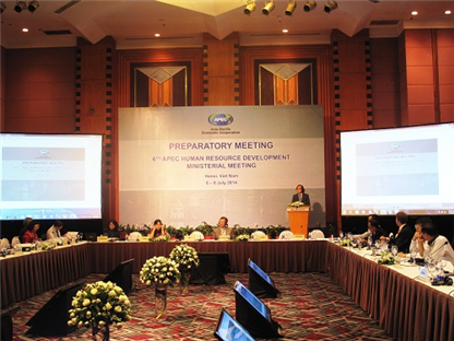 (VOV5) - Ngày 7/7, tại Hà Nội, Bộ Lao động, Thương binh và Xã hội tổ chức hội nghị chuẩn bị nội dung cho Hội nghị Bộ trưởng APEC về Phát triển nguồn nhân lực lần thứ 6 do Việt Nam đăng cai, dự kiến tổ chức vào tháng 9/2014. Phát biểu khai mạc Hội nghị, Thứ trưởng Bộ Lao động, Thương binh và Xã hội Nguyễn Thanh Hòa cho biết chủ đề chính của Hội nghị APEC về phát triển nguồn nhân lực lần thứ 6 là: “Tăng cường kết nối con người với con người và chất lượng việc làm thông qua phát triển nguồn nhân lực”.