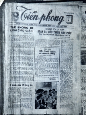 | Ảnh chụp trang 1 số 1 báo Tiền Phong, 16/11/1953. |