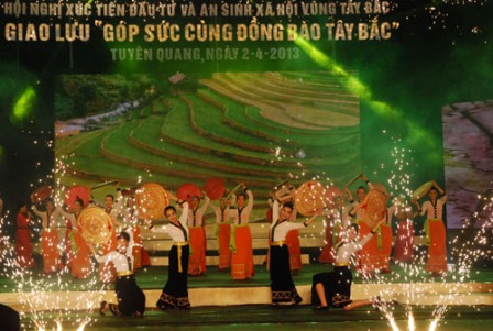 (VOV5) - Trong khuôn khổ Hội nghị Xúc tiến đầu tư và An sinh xã hội Tây Bắc, tối 02/04, tại tỉnh Tuyên Quang diễn ra Chương trình giao lưu “Góp sức cùng đồng bào Tây Bắc”. Phát biểu tại đây, Phó Thủ tướng Nguyễn Xuân Phúc nhấn mạnh Tây Bắc là địa bàn chiến lược đặc biệt quan trọng về quốc phòng an ninh- kinh tế của đất nước. Phó Thủ tướng khẳng định nhiều năm qua Đảng, Nhà nước đã dành cho Tây Bắc nhiều sự quan tâm với các chính sách ưu tiên về phát triển kinh tế- xã hội, xóa đói giảm nghèo an sinh xã hội.