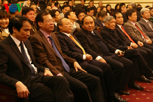 | Phó Thủ tướng Nguyễn Xuân Phúc, Nguyên Tổng Bí thư Lê Khả Phiêu và lãnh đạo một số bộ ban ngành Trung ương đến dự |