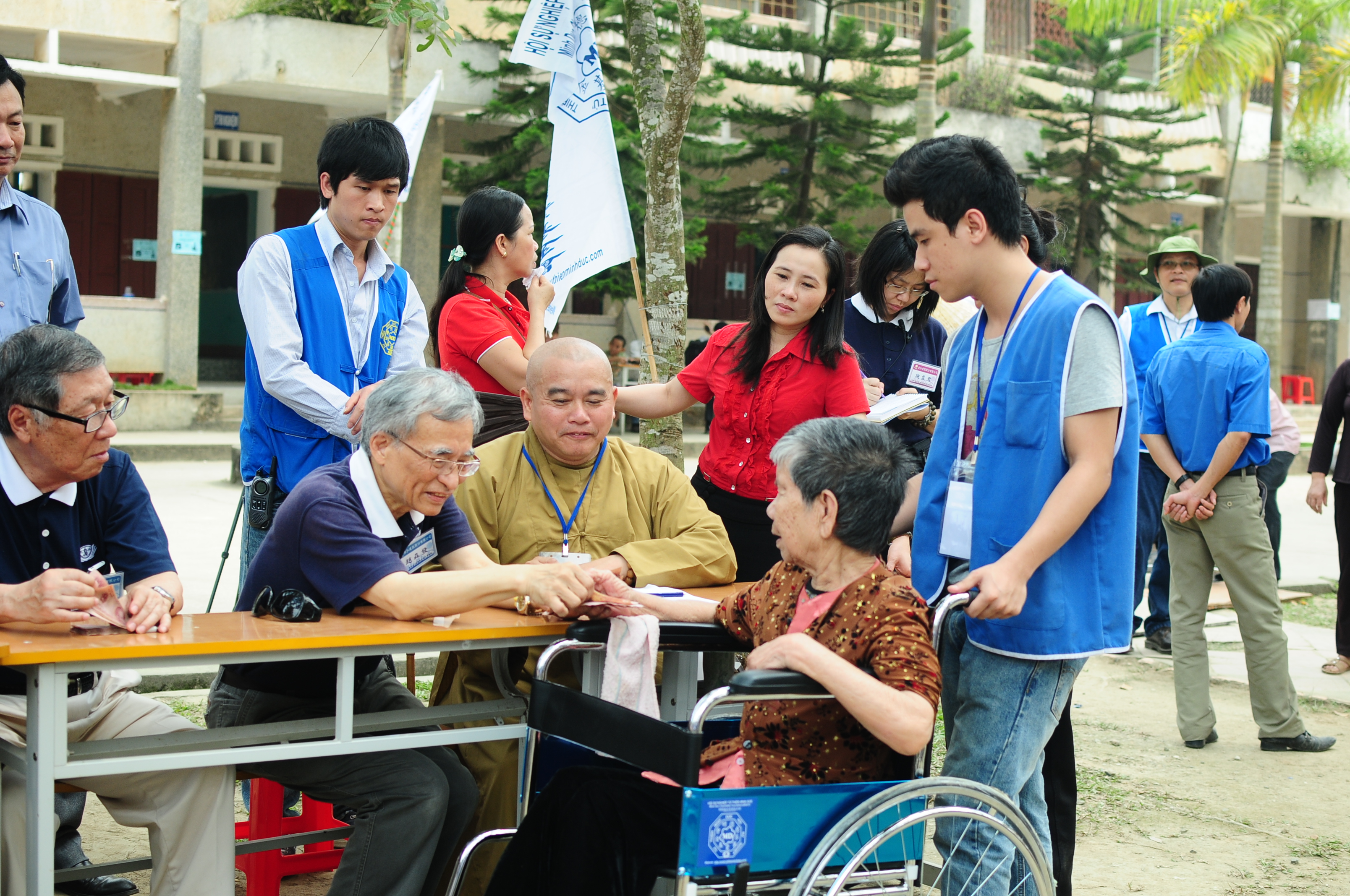 Chương trình được tổ chức quy mô như một bệnh viện dã chiến với đầy đủ các phòng khám: Sơ chẩn, Nội tổng hợp, Răng Hàm Mặt, Tai Mũi Họng, Mắt, Phụ khoa, Xét nghiệm, Chiếu Xquang, Nhi, Siêu âm điện tim, Dược với sự tham gia thăm khám của 200 y, bác sĩ, nha sĩ, điều dưỡng viên đến từ các bệnh viện lớn ở TP HCM, Hà Nội, Đà Lạt, Hà Nam, Mộc Châu. Cùng với đó, là sự hỗ trợ của các phật tử, thiện nguyện viên trẻ Hội Sự Nghiệp Từ Thiện Minh Đức, đoàn phật tử Đài Loan, phật tử Việt Kiều trong việc tiếp đón, hướng dẫn, sắp xếp, động viên đồng bào chờ khám bệnh, nhận thuốc và nhận quà.