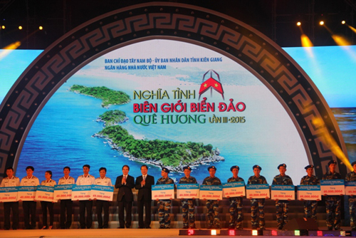 | Lãnh đạo Chính phủ trao Quỹ an sinh xã hội cho cán bộ chiến sĩ bảo vệ chủ quyền biển đảo. Ảnh: vovgiaothong.vn |