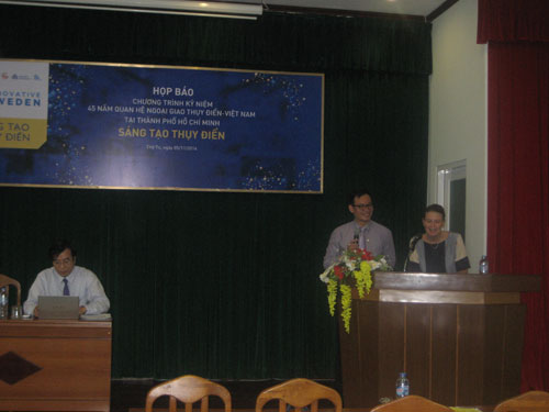 (VOV5)- Chào mừng kỷ niệm 45 năm thiết lập quan hệ ngoại giao Việt Nam – Thụy Điển, sáng nay, tại thành phố Hồ Chí Minh, Đại sứ quan Thụy Điển tại Việt Nam và Cơ quan thường trực Ban Tuyên giáo Trung ương tại thành phố họp báo chương trình “Innovative Sweden - Sáng tạo Thụy Điển”.