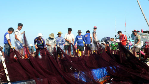 | Đoàn viên nghiệp đoàn nghề cá An Hải (Lý Sơn) chuẩn bị ngư cụ để vươn khơi bám biển (Ảnh: Thanhnien) |
