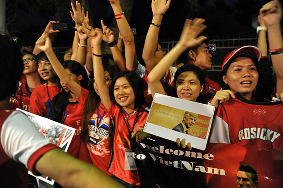 Đáp lại lòng hâm mộ của các fan Việt Nam, các cầu thủ Arsenal tỏ ra hết sức thân thiện, liên tục vẫy tay chào từ trong xe buýt. Bạn Đỗ Xuân Quân, một trong những thành viên của hội cổ động viên đội bóng nước Anh, bày tỏ: Mình hâm mộ Câu lạc bộ Arsenal được 4, 5 năm rồi. Cảm giác lúc này của mình là vừa mừng vừa lo. Mừng vì sắp được gặp các thần tượng của mình từ lâu lắm rồi, cơ hội cả đời có khi chỉ có một lần. Phải làm sao để đảm bảo hình ảnh Việt Nam mình, của fan Arsenal sao cho thật là đẹp.