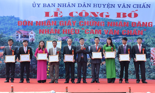(VOV5) - Ngày 3/12, tại huyện Văn Chấn, tỉnh Yên Bái, Cục Sở hữu trí tuệ, Bộ Khoa học và Công nghệ công bố chứng nhận đăng ký nhãn hiệu tập thể “Cam Văn Chấn” cho sản phẩm cam quả của huyện Văn Chấn, tỉnh Yên Bái.