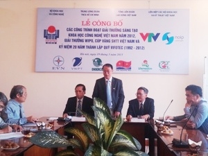 (VOV5) - Chiều 19/3, tại Hà Nội, Quỹ hỗ trợ sáng tạo kỹ thuật Việt Nam (Vifotex) công bố các công trình đoạt giải thưởng sáng tạo khoa học công nghệ Việt Nam, giải thưởng WIPO của Tổ chức sở hữu trí tuệ thế giới và Cúp vàng Sở hữu trí tuệ Việt Nam năm 2012.