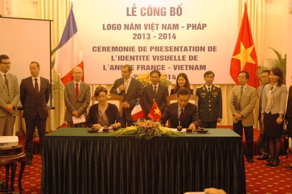 Logo năm Việt Nam-Pháp do họa sĩ hai nước cùng sáng tác, là biểu tượng thể hiện ước vọng hòa bình và phát triển của hai dân tộc Việt-Pháp. Logo có 3 màu sắc chủ đạo là xanh, trắng, đỏ là màu cờ của Pháp. Logo có biểu trưng chủ đạo là hình hoa sen, được thể hiện bằng nhiều đường chéo nối nhau thể hiện sự da dạng trong quan hệ hợp tác Pháp - Việt cũng như sự đa ngành trong các chương trình sẽ được tổ chức trong khuôn khổ năm Việt Nam - Pháp 2014. Bông hoa sen có 8 cánh là một con số may mắn trong quan niệm của người Việt Nam. Logo này sẽ luôn có mặt tại các sự kiện trong khuôn khổ năm Việt Nam-Pháp 2013-2014.