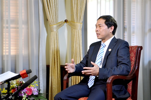 | Thứ trưởng Ngoại giao Bùi Thanh Sơn trả lời phỏng vấn. Ảnh: TTXVN |