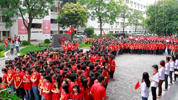 Hơn 3.000 sinh viên và cán bộ, giảng viên toàn trường đã mặc áo cờ đỏ sao vàng, xếp hình bản đồ Việt Nam với hai quần đảo Hoàng Sa và Trường Sa, nhằm khẳng định chủ quyền biển, đảo Việt Nam.