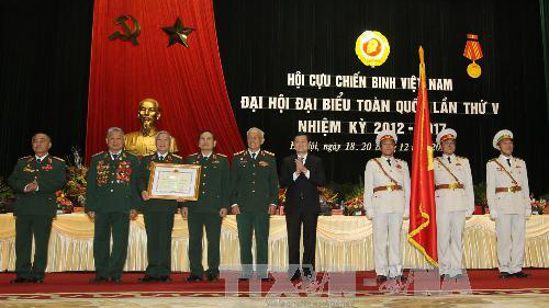 Chủ tịch nước Trương Tấn Sang trao tặng Huân chương Hồ Chí Minh cho Hội Cựu chiến binh Việt Nam và Huân chương Độc lập, Huân chương Lao động cho các đồng chí lãnh đạo của Hội Cựu chiến binh Việt Nam (Ảnh:TTXVN)