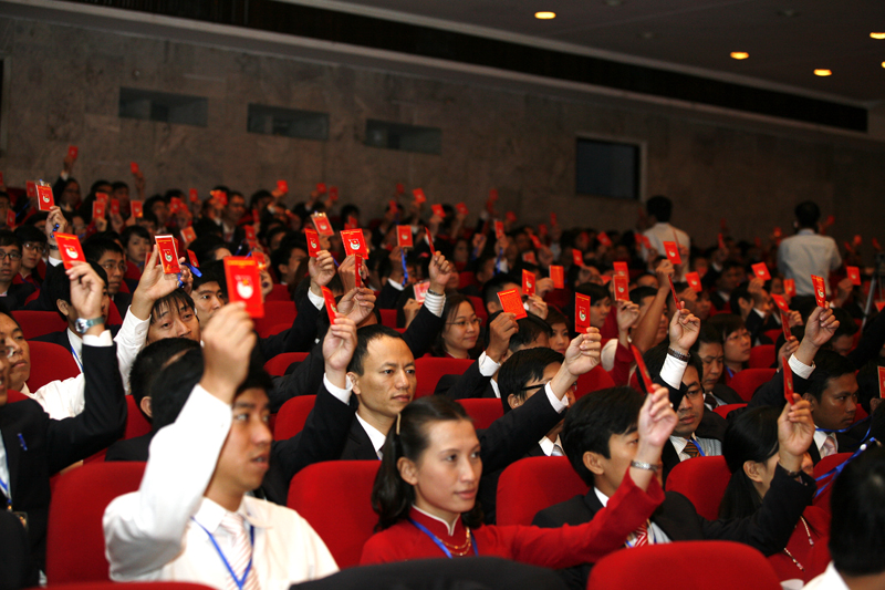 Các đại biểu biểu quyết tại Đại hội. (Ảnh: Bảo Anh)