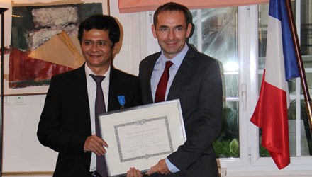 (VOV5) - Chiều 10/6, tại Hà Nội, Đại sứ Pháp tại Việt Nam, ông Jean-Noël Poirier, trao tặng ông Trần Bình Minh, Tổng giám đốc Đài Truyền hình Việt Nam Huân chương Quốc công, một trong những huân chương cao quý của Cộng hòa Pháp.