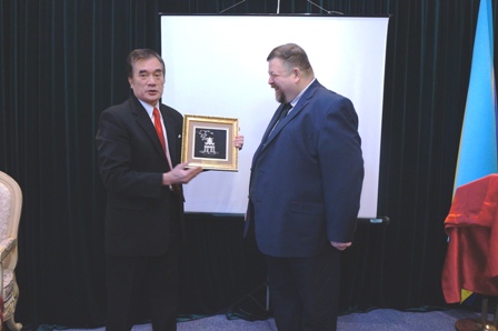 | Đại sứ Việt Nam tại Ukraine, Nguyễn Minh Trí trao quà lưu niệm |