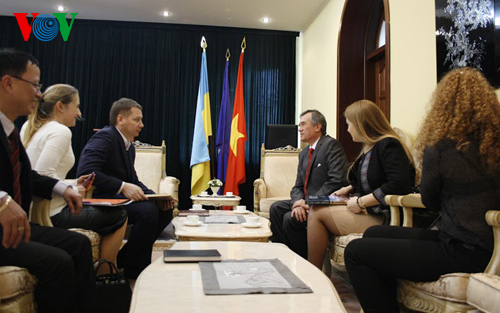 Đại sứ thông báo Hội Hữu nghị Ukraina – Việt Nam đang phối hợp với Đại sứ quán và Hội Hữu nghị Việt Nam - Ukraina tích cực chuẩn bị tổ chức những hoạt động thiết thực nhằm kỷ niệm những ngày lễ lớn của dân tộc Việt Nam trong năm 2015 và hướng tới kỷ niệm 50 năm ngày thành lập Hội vào đầu năm 2015. Các nghị sỹ đều khẳng định cam kết ủng hộ các hoạt động thúc đẩy quan hệ trong thời gian tới và đề xuất phía Việt Nam xem xét các dự án hợp tác đầu tư với Ukraina trong lĩnh vực trồng lúa, nuôi thủy sản, công nghiệp.