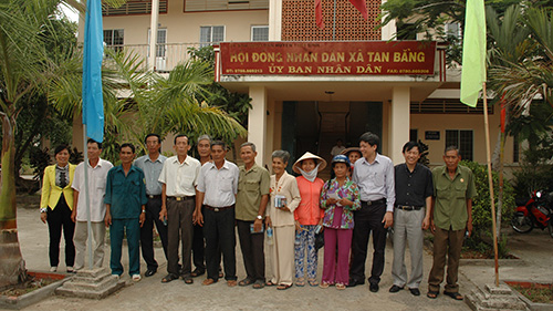| Đoàn công tác của VOV chụp ảnh lưu niệm với bà con và cán bộ xã Tân Bằng |