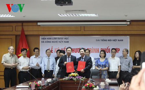 Lễ ký kết diễn ra sáng 17/4 tại Hà Nội. Tổng Giám đốc Đài Tiếng nói Việt Nam Nguyễn Đăng Tiến và Chủ tịch Viện Hàn lâm Khoa học và Công nghệ Việt Nam Châu Văn Minh ký kết chương trình phối hợp “Nâng cao hiệu quả tuyên truyền các hoạt động nghiên cứu, ứng dụng khoa học công nghệ trên các phương tiện truyền thông của Đài Tiếng nói Việt Nam”. Theo đó, Viện Hàn lâm Khoa học và Công nghệ Việt Nam tạo điều kiện cho các đơn vị biên tập của Đài tiếp cận, tìm hiểu thực tế và khai thác thông tin về các hoạt động khoa học, công nghệ, tình hình thực hiện các cơ chế, chính sách khoa học và công nghệ để phục vụ tuyên truyền. Đài Tiếng nói Việt Nam sẽ đa dạng hóa các giải pháp truyền thông nhằm nâng cao hiệu quả tuyên truyền về chính sách khoa học và công nghệ; kịp thời thông tin về các hoạt động khoa học, công nghệ của Viện trên các phương tiện của Đài Tiếng nói Việt Nam là phát thanh, truyền hình, báo in, báo điện tử.