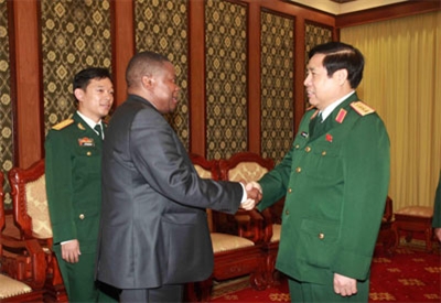 | Đại tướng Phùng Quang Thanh tiếp Quốc vụ khanh về Quốc phòng Nam Phi, Tiến sĩ S.M.Gu-lu-bê. Ảnh: HỒNG PHA |