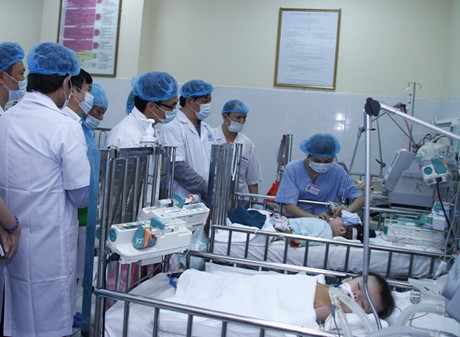 (VOV5) - Chiều 15/4, ngay sau khi nghe Bộ Y tế báo cáo về tình hình bệnh sởi, Phó Thủ tướng Chính phủ Vũ Đức Đam trực tiếp kiểm tra công tác điều trị bệnh nhân sởi tại Bệnh viện Nhi Trung ương và thăm hỏi, động viên gia đình các bệnh nhi nhiễm sởi.