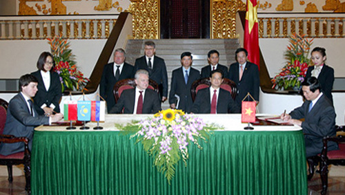 | Thủ tướng Nguyễn Tấn Dũng và ông Vitor Borisovich Khristenko chứng kiến lễ ký thông báo chung giữa hai trưởng đoàn đàm phán. Ảnh: chinhphu.vn |