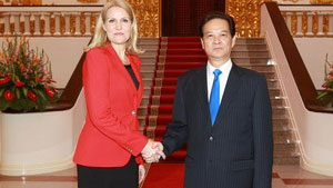 Thủ tướng Nguyễn Tấn Dũng nhiệt liệt hoan nghênh Thủ tướng Đan Mạch Helle Thorning-Schmidt sang thăm chính thức Việt Nam, coi đây là một sự kiện chính trị quan trọng thúc đẩy mạnh mẽ quan hệ hai nước.
