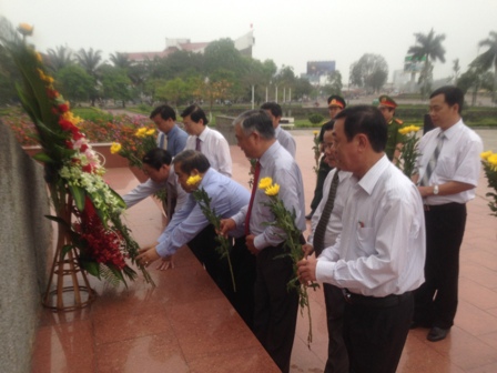 | ác lãnh đạo tỉnh Quảng Trị dâng hoa tại tượng đài Cố Tổng Bí thư Lê Duẩn. Ảnh: Đài PTTH Quảng Trị |