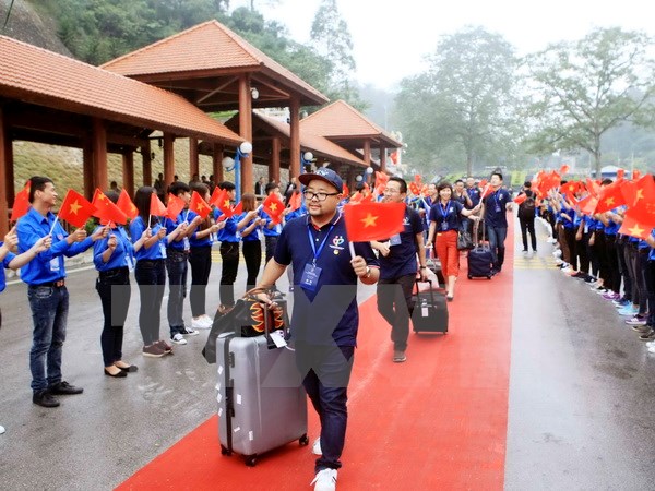 | Lễ đón đoàn đại biểu Trung Quốc tham dự Liên hoan thanh niên Việt Nam-Trung Quốc lần thứ III. Ảnh: TTXVN |
