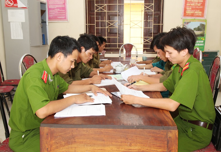 | Công an huyện Vĩnh Tường thường xuyên xuống địa bàn, nắm bắt tình hình ANTT. Ảnh Khánh Linh |