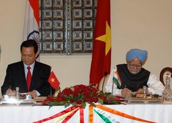 | Thủ tướng Nguyễn Tấn Dũng và Thủ tướng Ấn Độ Manmohan Singh ký Tuyên bố chung về quan hệ đối tác chiến lược (Ảnh: Website Chính phủ) |