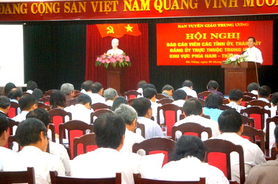 (VOV5)- Ngày 6/8, tại thành phố Đà Nẵng, Ban Tuyên giáo Trung ương tổ chức hội nghị báo cáo viên với sự tham dự của đội ngũ cán bộ, báo cáo viên Tỉnh ủy, Thành ủy, Ban Tuyên giáo các tỉnh, Trường Chính trị, cơ quan truyền thông, Đảng ủy trực thuộc Trung ương ở khu vực phía Nam, từ thành phố Đà Nẵng trở vào.