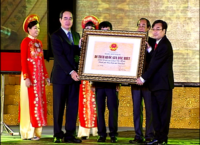 | Phó Thủ tướng Nguyễn Thiện Nhân trao Bằng Di tích quốc gia đặc biệt cho tỉnh Nam Định. - Ảnh: VGP/Thành Chung |