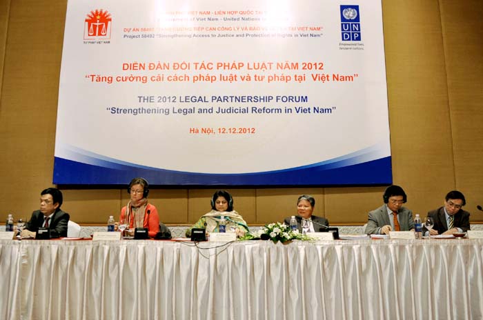 (VOV5) - Diễn đàn đối tác pháp luật năm 2012 với chủ đề “Tăng cường cải cách pháp luật và tư pháp tại Việt Nam” do Bộ Tư pháp phối hợp với Chương trình phát triển của Liên hợp quốc tổ chức đã diễn ra hôm nay, 12/12, tại Hà Nội. Nội dung chính của Diễn đàn đối tác pháp luật năm 2012 là chia sẻ, cập nhật thông tin về tình hình thực hiện chiến lược cải cách tư pháp và cải cách pháp luật;tình hình thực hiện các nhiệm vụ cải cách tư pháp và chương trình trọng tâm công tác cải cách tư pháp giai đoạn 2012-2016; tiến trình sửa đổi Hiến pháp năm 1992.