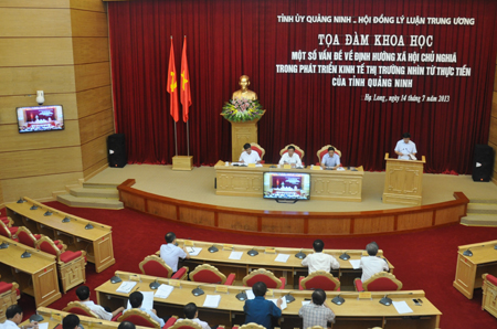 Các đại biểu đã trình bày tham luận về tình hình, kết quả phát triển kinh tế và thực hiện định hướng xã hội chủ nghĩa trong phát triển kinh tế thị trường tại Quảng Ninh; những cơ chế chính sách, giải pháp đề xuất với Trung ương nhằm thúc đẩy kinh tế thị trường phát triển mạnh và có hiệu quả hơn trong giai đoạn 2013-2015 và tầm nhìn đến năm 2020.