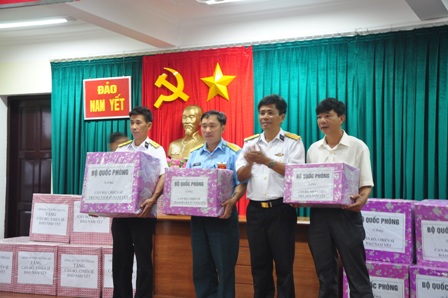 | Đoàn công tác tặng quà của Bộ Quốc phòng cho cán bộ, chiến sĩ trên đảo Nam Yết. |