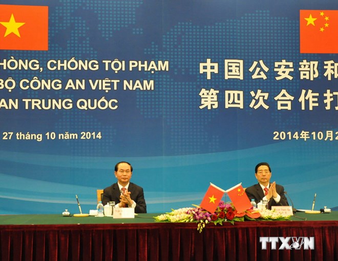 | Bộ trưởng Trần Đại Quang (trái) và Bộ trưởng Quách Thanh Côn (phải) chủ trì Hội nghị Hợp tác phòng, chống tội phạm giữa Bộ Công an Việt Nam và Bộ Công an Trung Quốc |