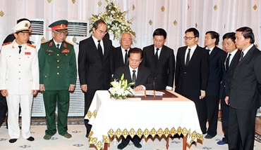 Thủ tướng Nguyễn Tấn Dũng ghi sổ tang tại Lễ viếng |